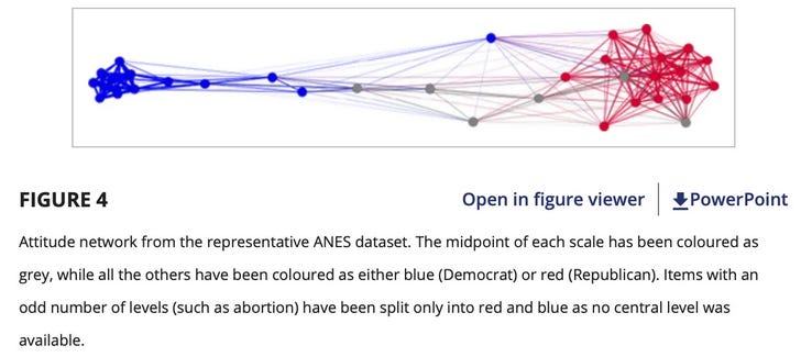 In other words, Democrats tended to cluster tightly around extreme, uniform beliefs, while Republicans showed a broader spread of agreement, even encompassing some moderate or neutral stances.