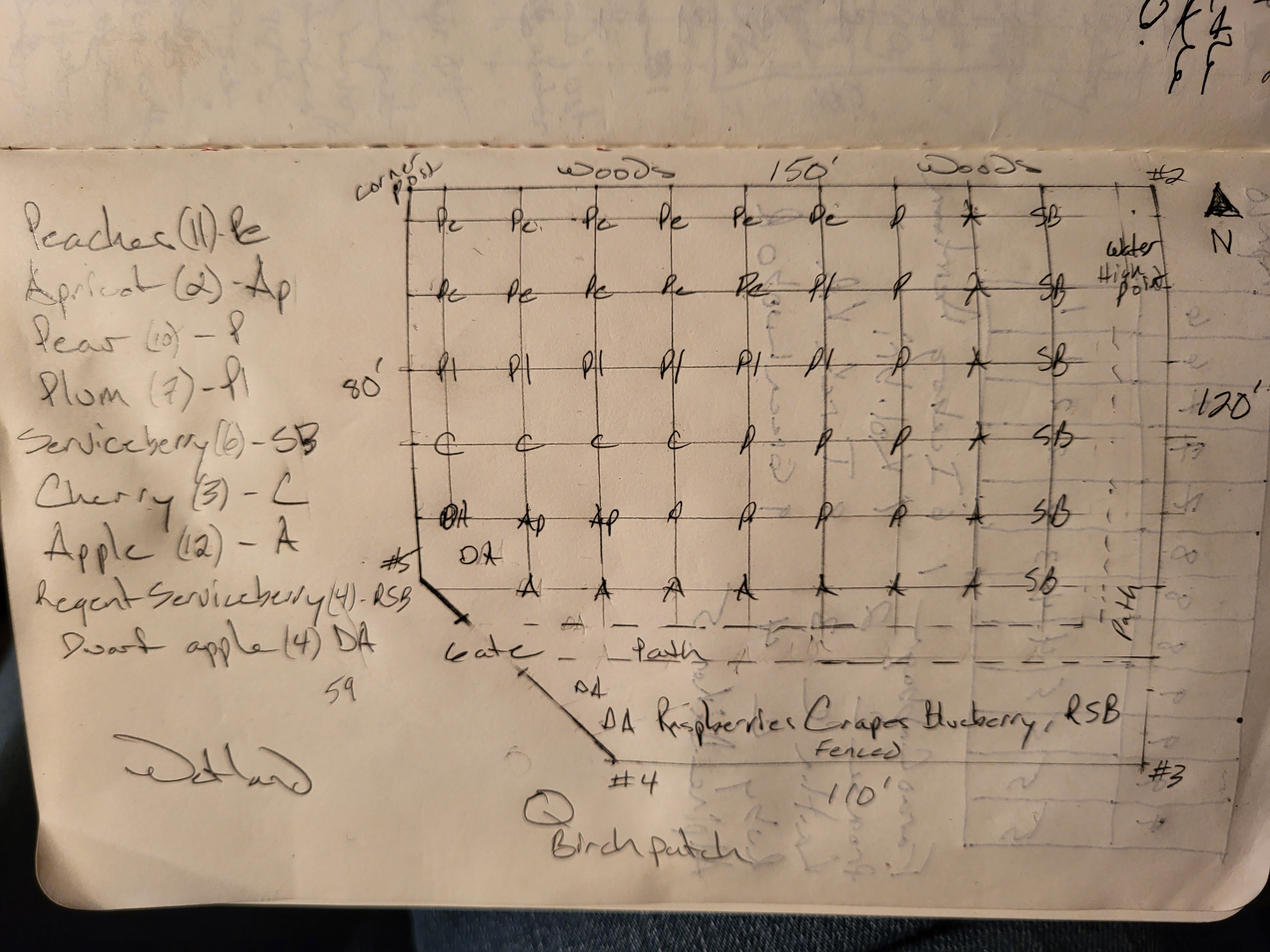The company I am getting most of the trees from was going to mail them on the 11th of April. I asked them to put that off please. Bulk of the trees arrive around May 08. I want to have the holes ready, and the bed for the vines, canes, shrubs prepared. Four straight days in the fifties-sixties this week, maybe some rain. Hopefully by next weekend, I can start digging.